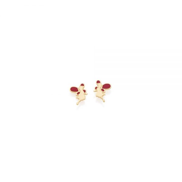 Brinco infantil no formato de “fada” com aplicação de resina nas “asas”. med. 1,10 cm