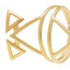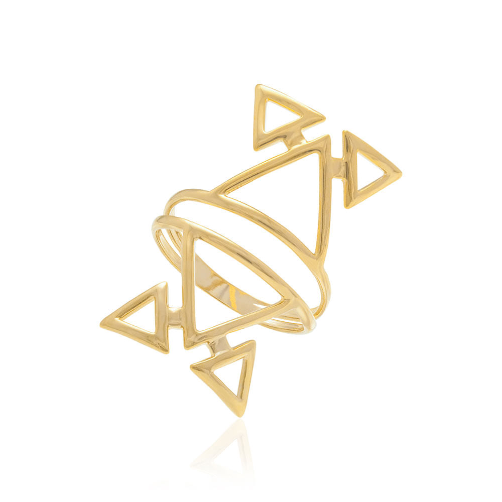 Anel com laterais vazadas tenho na parte superior detalhes triangulares vazados.
