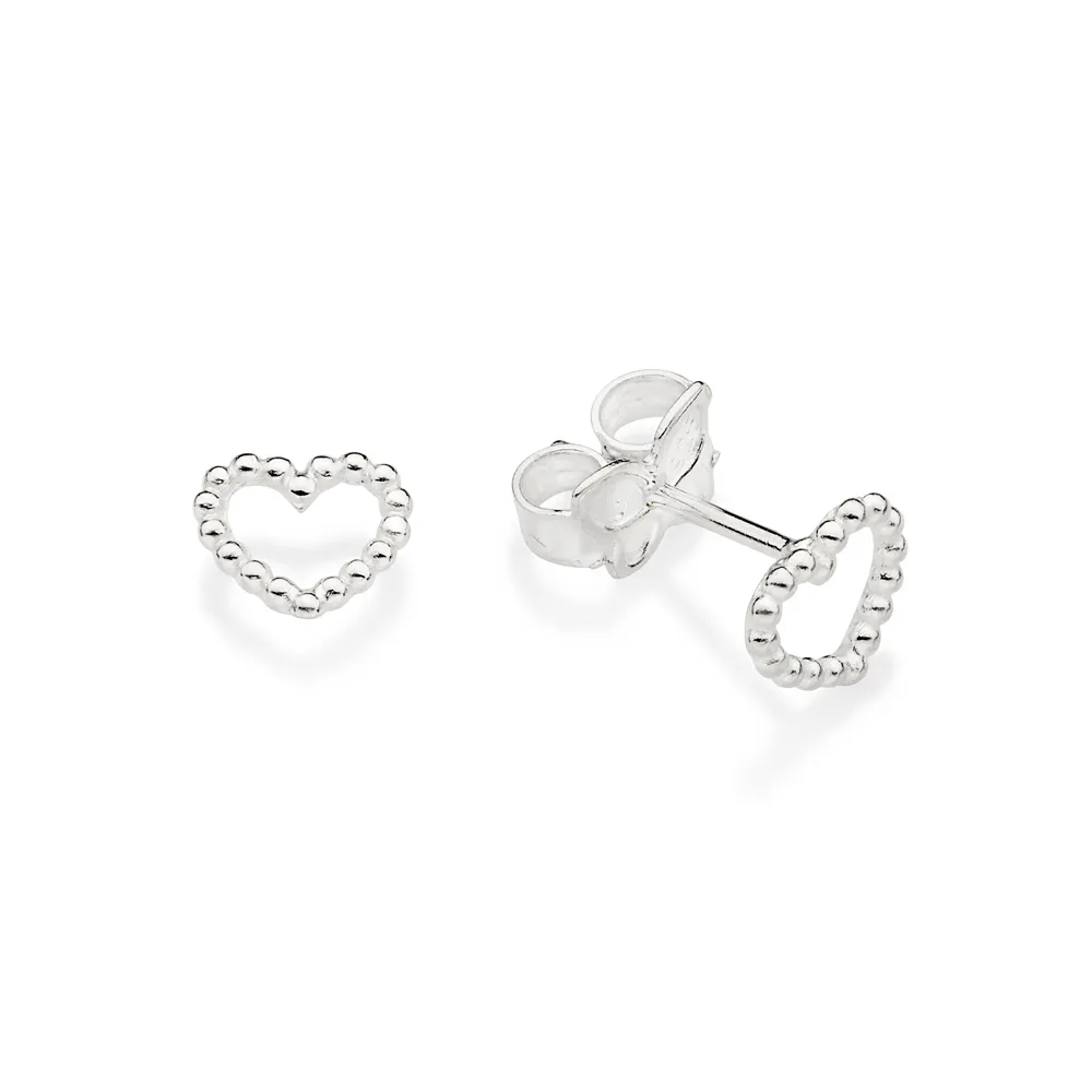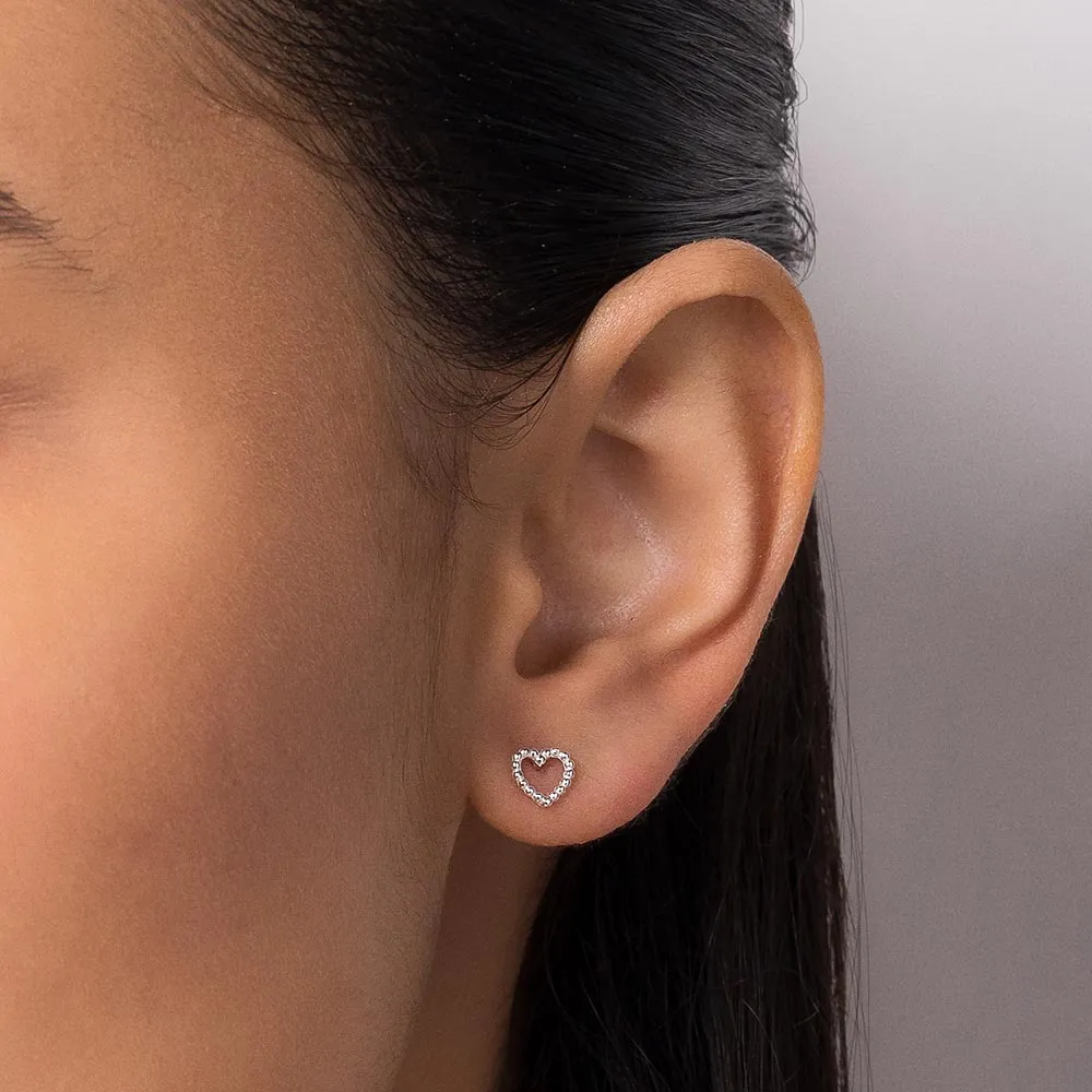 Brinco Rommanel formato coração com pequenas esferas. Coleção Prata 925.