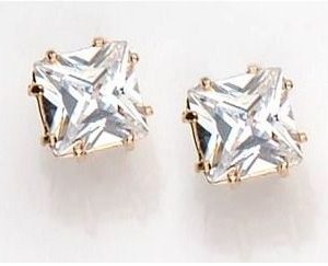 Brinco F. Ouro 18k Feminino Cristal Carrê Rommanel 525538