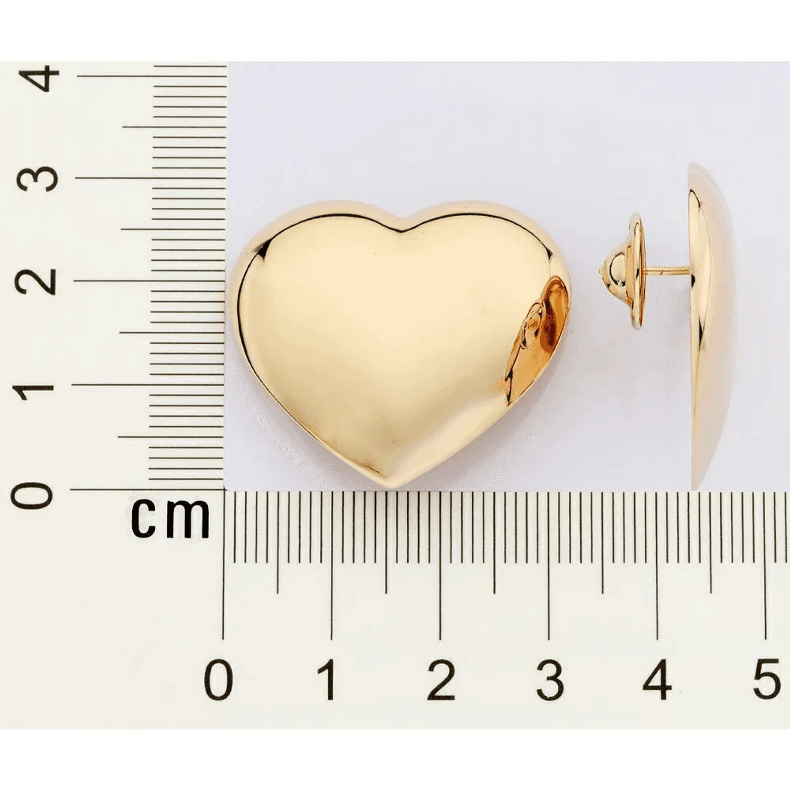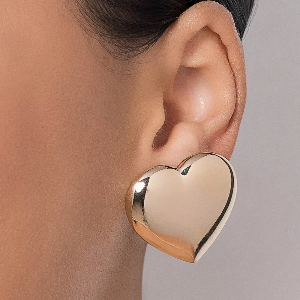 Brinco Rommanel coração liso e abaulado. estilo bold. Coleção Cápsula do Tempo.